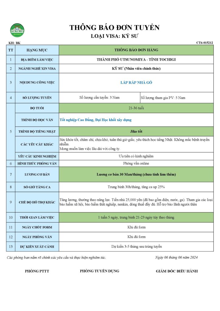 Kỹ Sư Nhật: CAO ĐẲNG ĐẠI HỌC (KHÔNG YÊU CẦU KINH NGHIỆM) ...